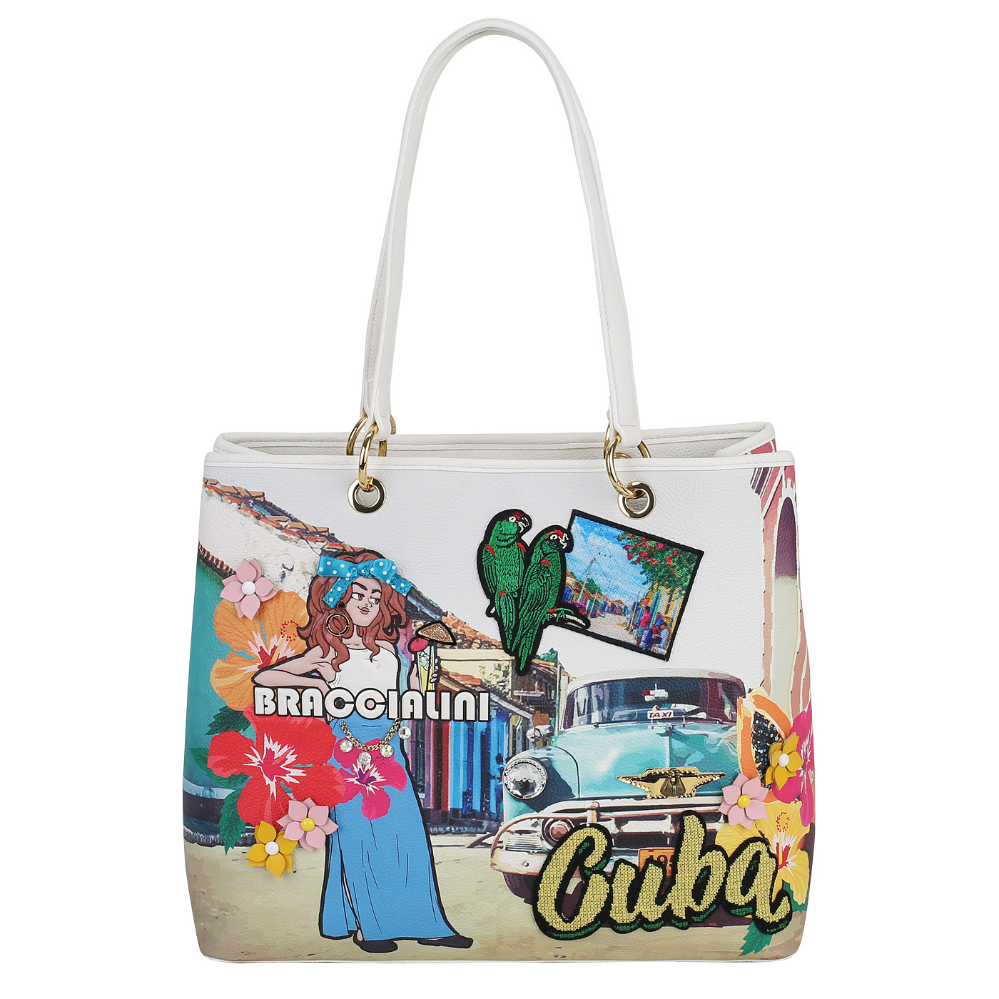 Сумка с длинными ручками Braccialini Cartoline B17622-YY_unico_pc - 2000558657464 мульти полиэстер, полиуретан 37,5 x 31 x 13 Цена 24990 руб. купить в интернет-магазине PanChemodan.ru в Тольятти