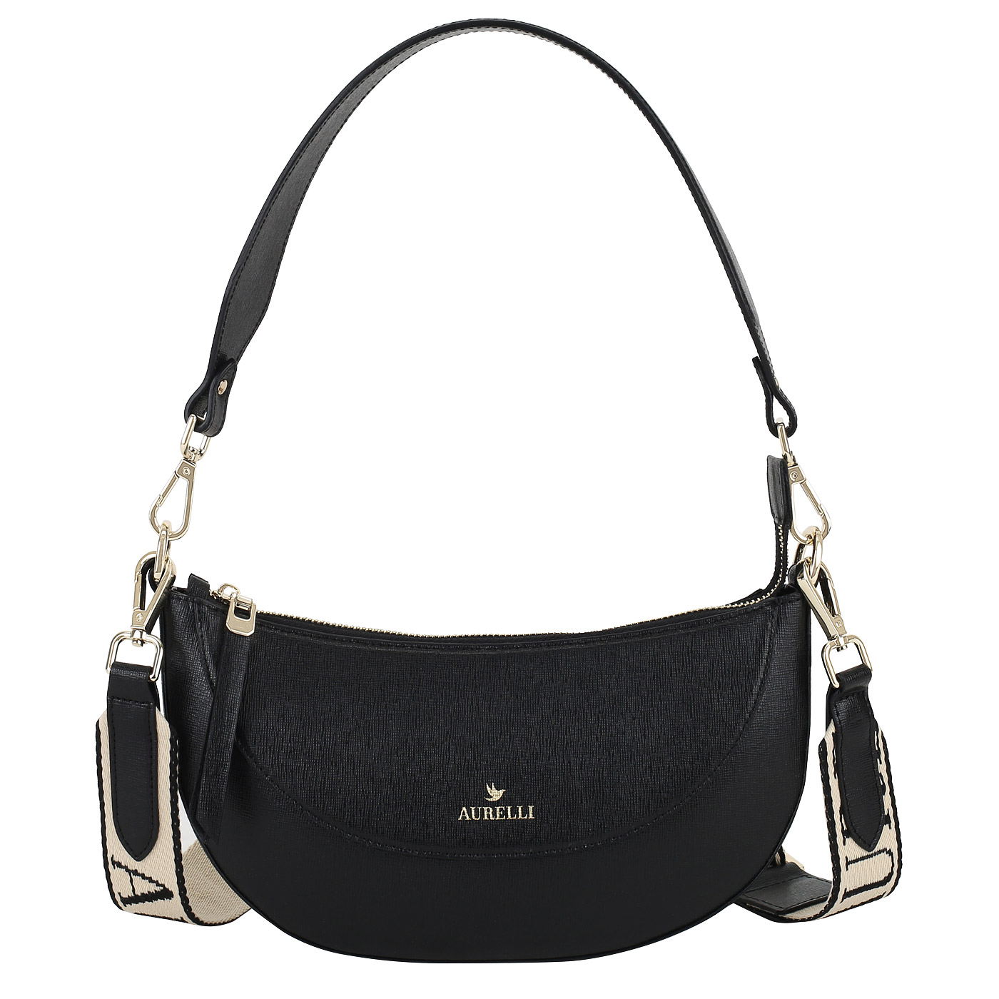 Кожаная сумка Aurelli Bella 23S0155-18G-nero_pc - 2000558620987 черный натуральная кожа 27 x 12 x 5,5 Цена 9090 руб. купить в интернет-магазине PanChemodan.ru в Ставрополе
