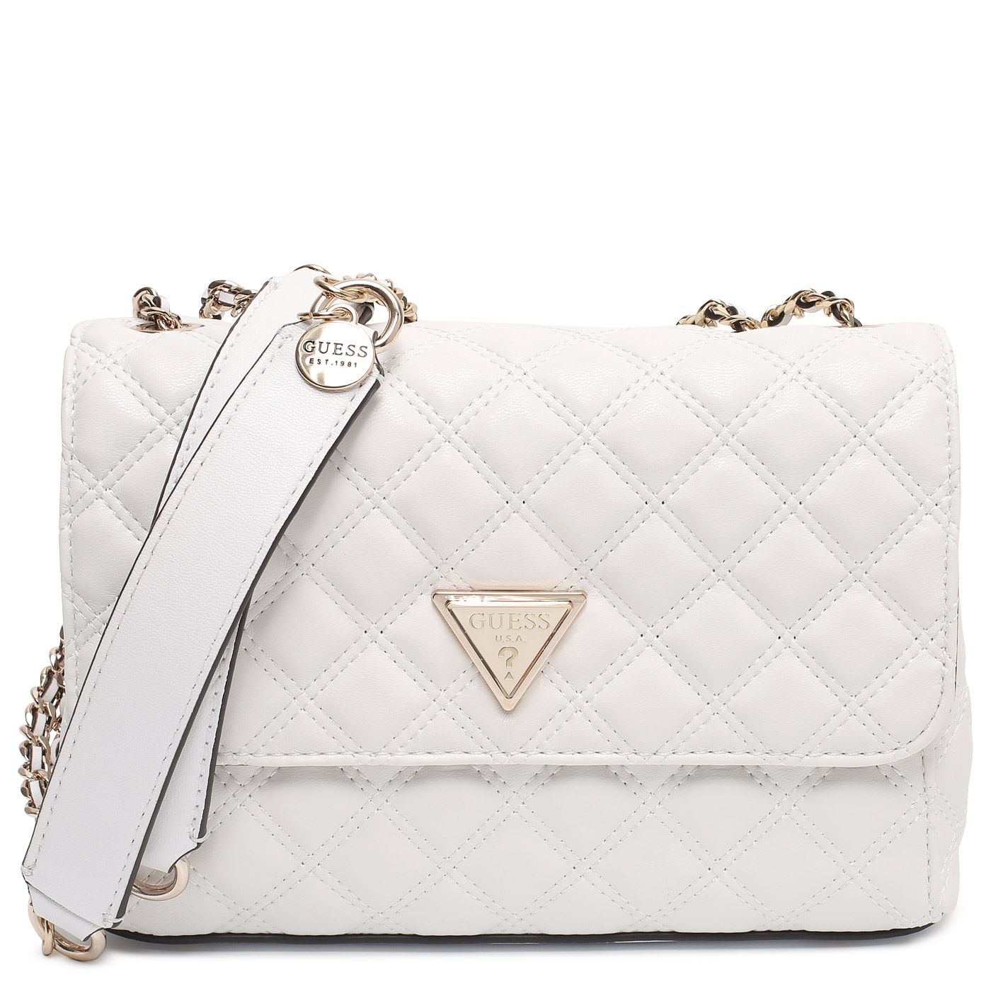 Сумка с ручками-цепочками Guess Giully HWQG87 48200_white_pc - 2000558729239 белый полиуретан 24 x 16,5 x 7,5 Цена 10250 руб. купить в интернет-магазине PanChemodan.ru в Москве